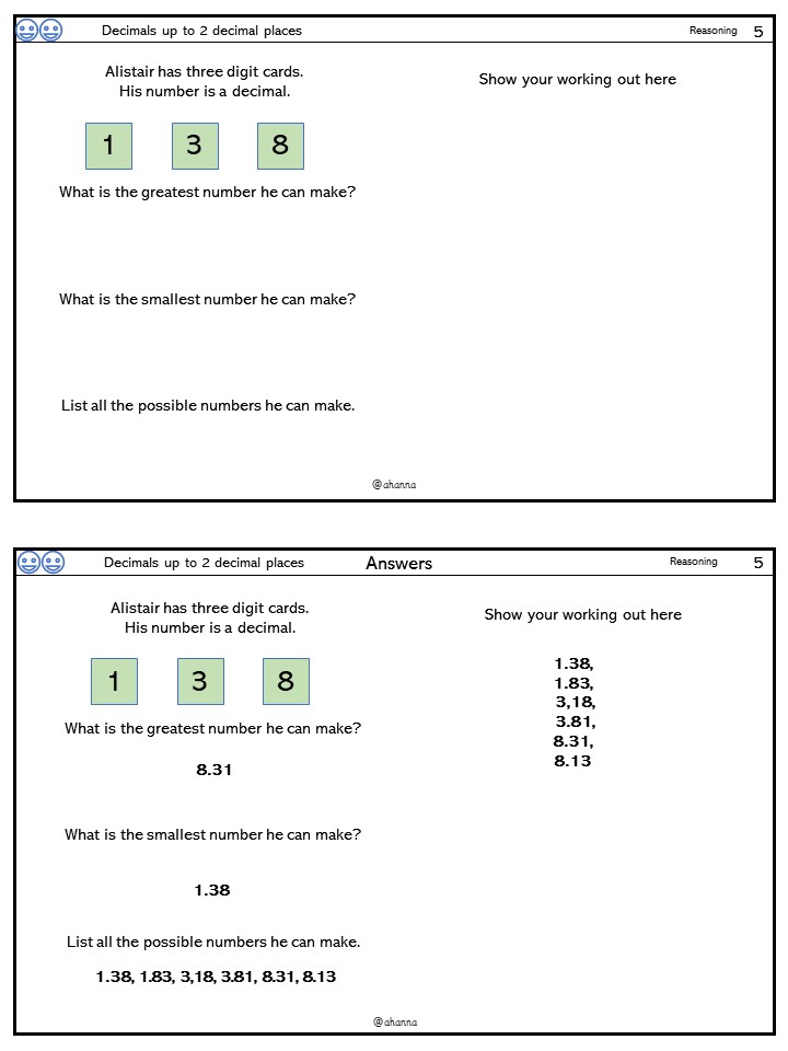 These worksheets display numbers with up to 2 decimal places.