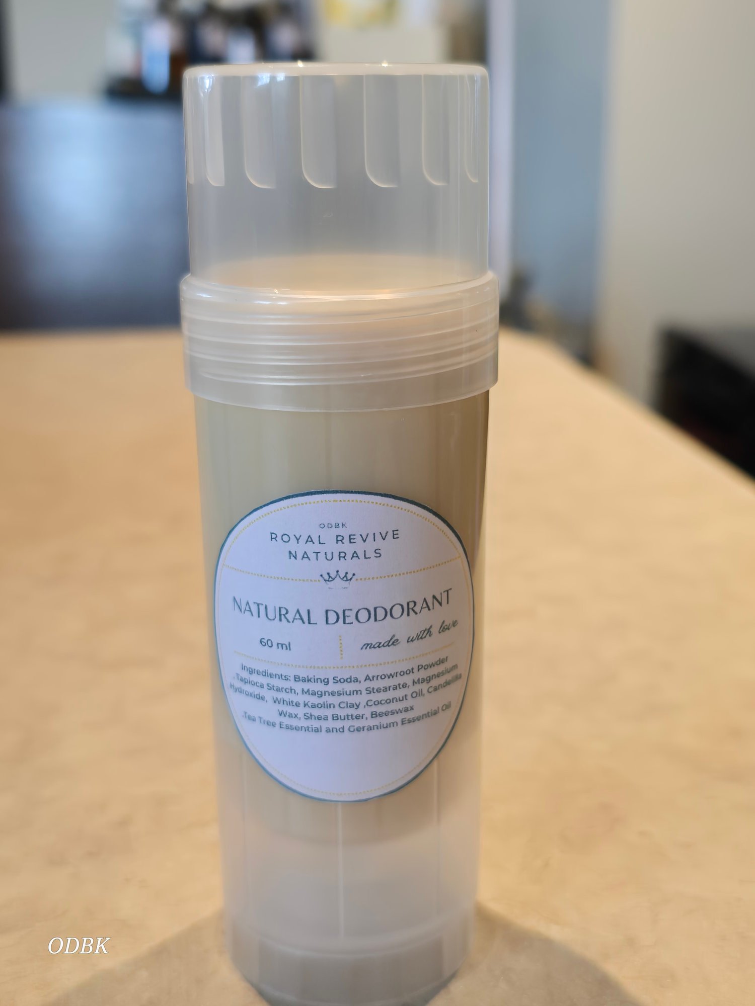 This natural antiperspirant deodorant consist of ingredients that will help neutralize odor by absorbing sweat and detox the armpits keeping you dry and fresh all day. The ingredients used in this product are aluminum free Baking Soda, Arrowroot Powder, Tapioca Starch , White Kaolin Clay,Magnesium Sterate (natural antiperspirant), Magnesium Hydroxide, Coconut Oil, Candelilla Wax, Shea Butter, Beewax, Tea Tree and Geranium Essential Oil.