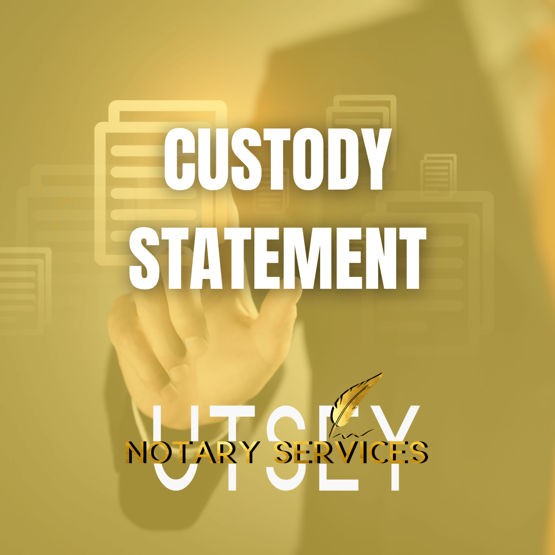 This is a general template and may not replace state-specific custody documents. Please confirm acceptance with the requesting party. Utsey Notary Services LLC does not provide legal advice.