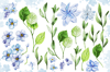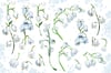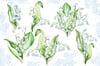 This watercolor set consists of 81 watercolor elements. They include patterns, bouquets, wreaths and elements separately. Delicate watercolor lily of the valley and blue flowers, leaves and buds.