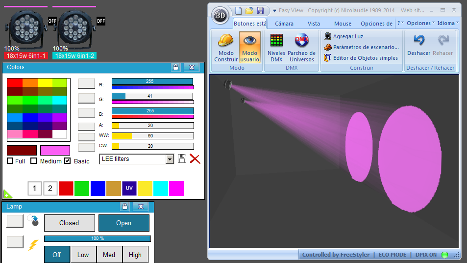 Esta Librería SSL2 está optimizada para trabajar con Magic 3d Easy View. Es decir para ver una representación 3D de las secuencias que estemos realizando con Freestyler, QLC+ o cualquier otro soft que se conecte con Magic 3d.