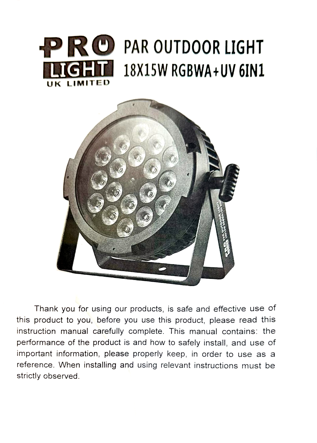 Librería de Magic 3D P/ Par Outdoor Light 18x15w RGBWA+UV 6IN1 de Pro Light UK ( 6-10CH )