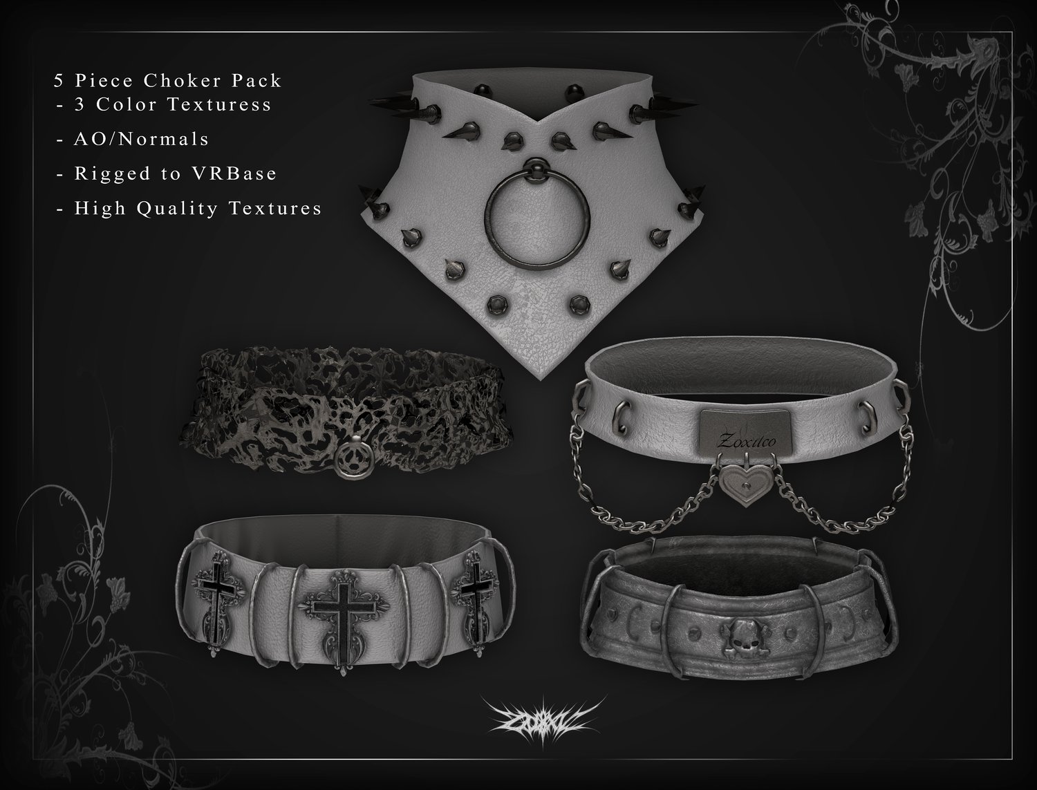 - 3 Color Textures (Black,White,Red) for Each Choker