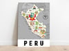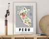 Peru map print Digital Peru map Printable art Map of Peru gifts Modern map Office wall decor Peru flag icons map poster housewarming gifts kids room decor nursery map print classroom poster