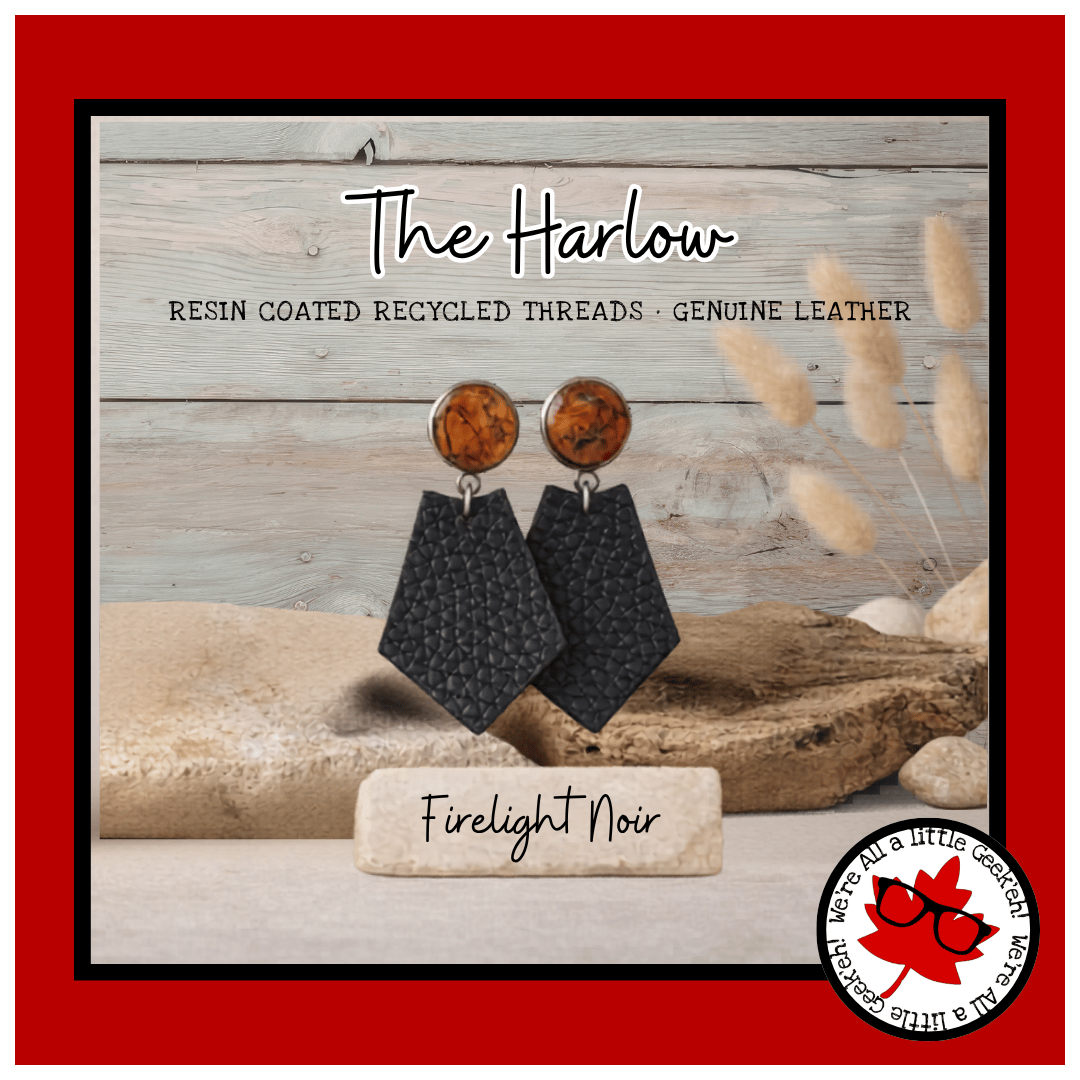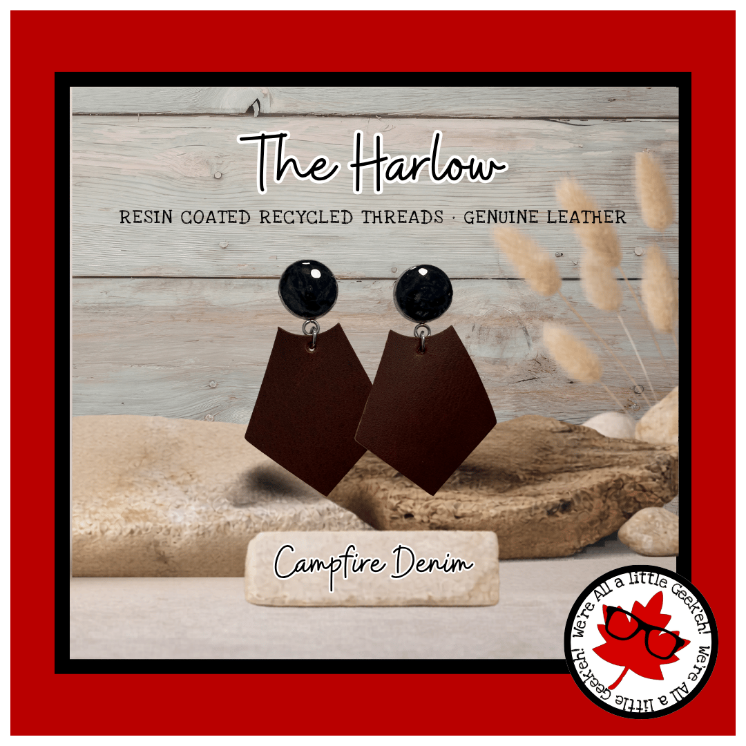 The Harlow pairs my signature resin-encased thread studs—made from rescued fabric strands—with a soft leather kite drop that adds movement, texture, and effortless edge.