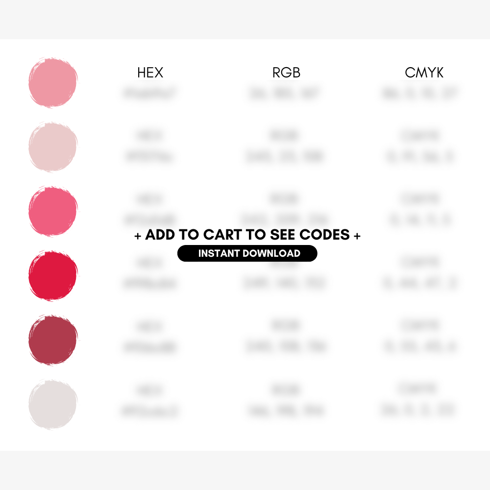 Introducing our vibrant Candy Hearts Color Palette, perfect for creative entrepreneurs and small businesses looking to elevate their branding design! This delightful collection features an array of bright pink shades, rouge, soft gray, and pale pink hues, meticulously curated to enhance your brand's visual identity across all platforms. Whether you're updating your website color scheme, designing eye-catching social media graphics, or crafting compelling marketing materials, these colors will bring a fresh and cohesive look to your brand packaging. Ideal for both print and digital projects, our palette includes precise Hex Codes, RGB, and CMYK values, ensuring seamless integration with tools like Canva, Procreate, and Goodnotes. Perfect for Valentine's Day-themed promotions or any time you want to add a touch of sweetness to your designs. Make a memorable impression with this enchanting color set, and watch your brand stand out with style and grace!