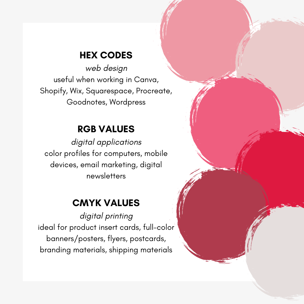 + Detailed Hex Codes, RGB, and CMYK values for each color