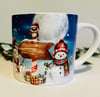 Cute Santa and friends 6oz mug wrap with space to personalise.