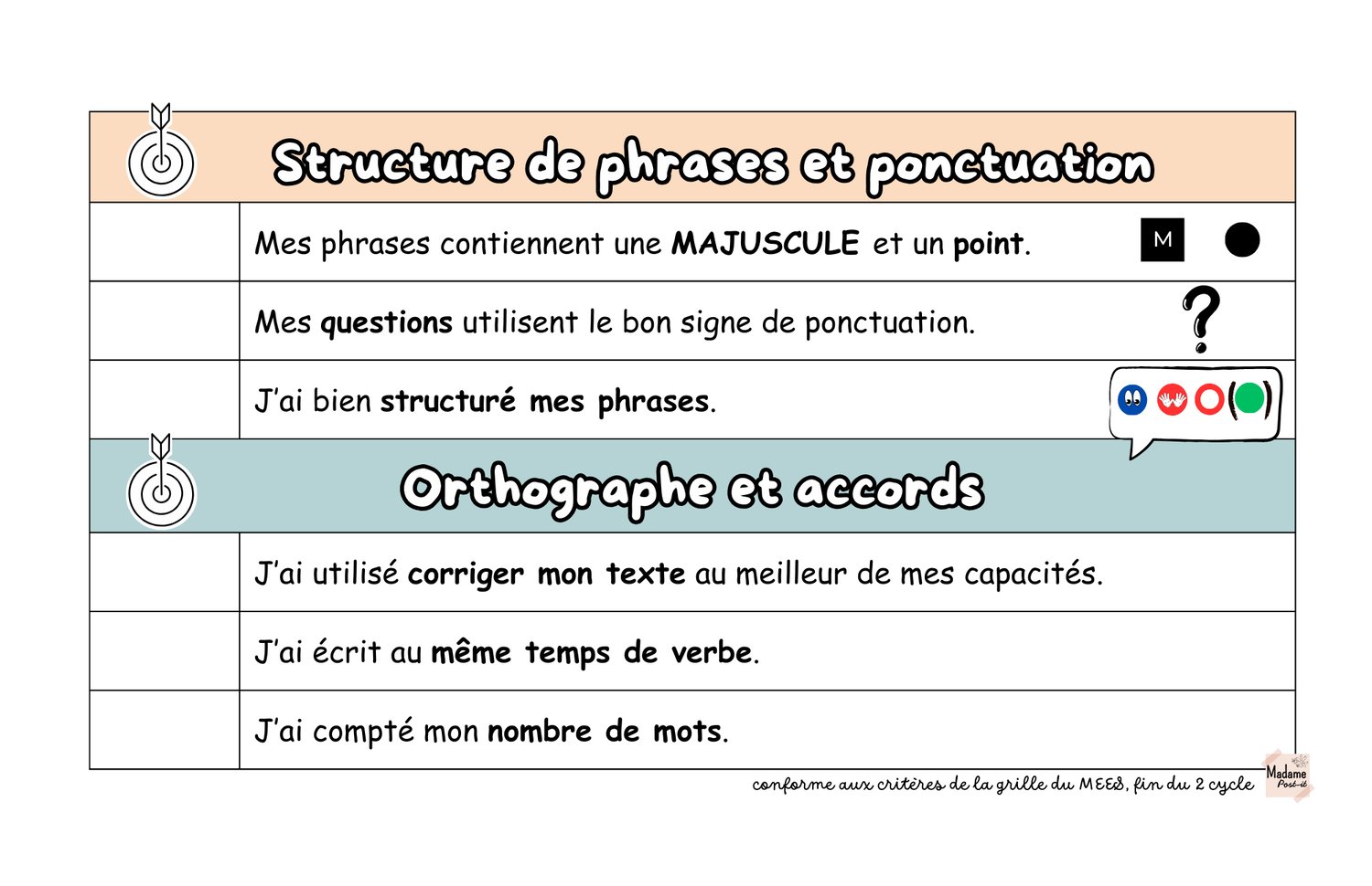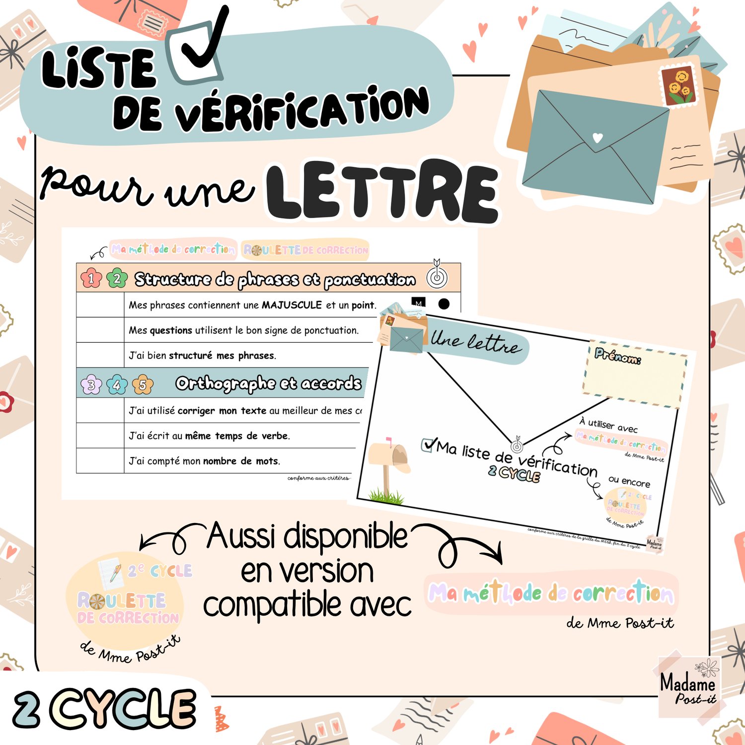 - une version compatible avec les autres documents de Mme Post-it: Ma méthode de correction - 2 et 3 cycle - Payhip et Roulette de correction - 2 et 3 cycle - Payhip
