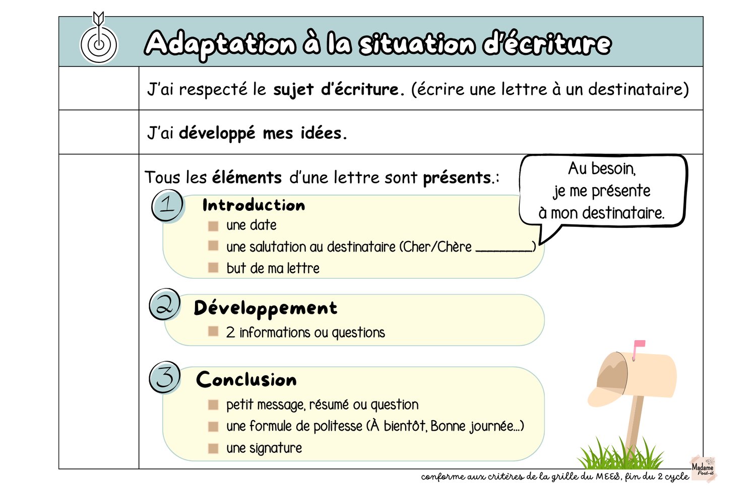 Objectif de ce document : Aider vos élèves à atteindre la cible lors de l’écriture d’une lettre, tout en développant leur autonomie et leur confiance en écriture.