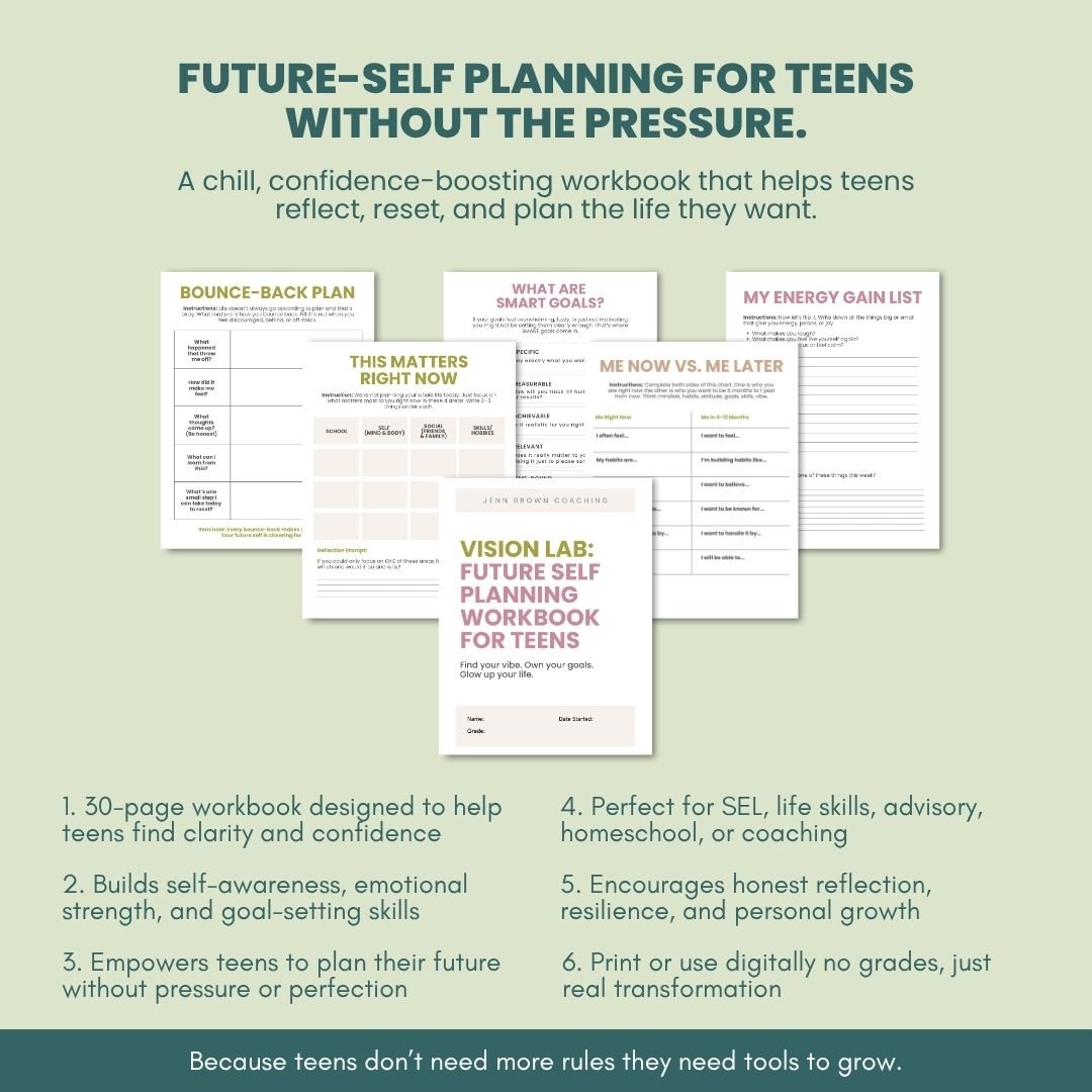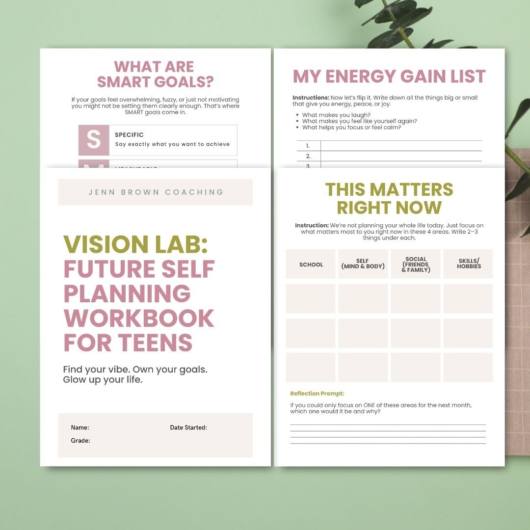 The Vision Lab Future-Self Planning Workbook guides students through simple, meaningful prompts that build self-awareness, confidence, and direction—without overwhelming them.