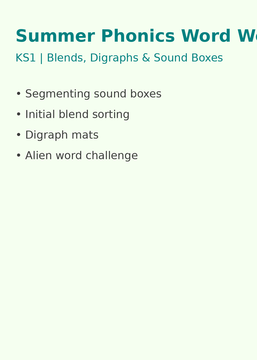 Summer Phonics Word Work – Blends, Digraphs & Sound Boxes (KS1)