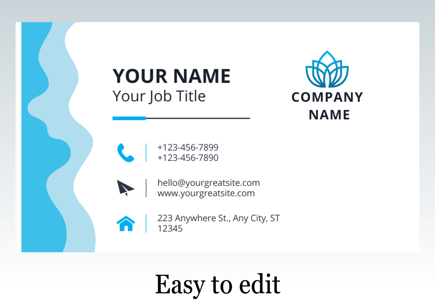 General modern blue and white design business card, Simple yet elegant, stylishly designed on a horizontal business card: This is a professional business card. The design gives off a clean and crisp vibe and is perfect for companies and self-employed individuals. Easily add your name, title, and contact details. Impress your clients with this professional horizontal business card.