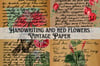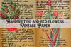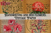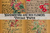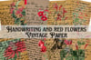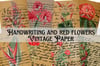 Handwriting, and red flowers Vintage Paper, Handwriting and red flowers Digital Paper, Handwriting, wildflowers Vintage Paper, Handwriting, and Floral Background.