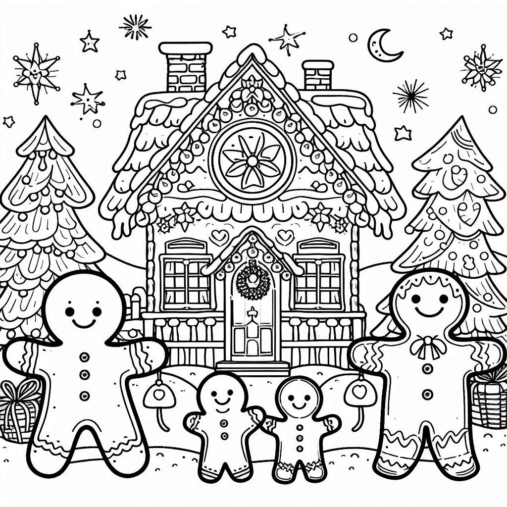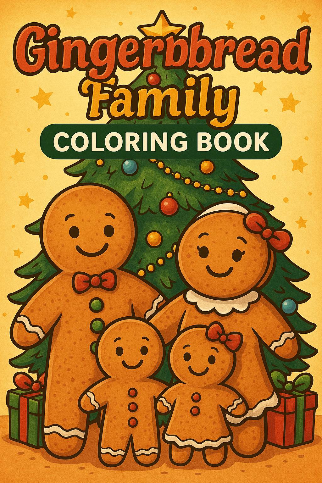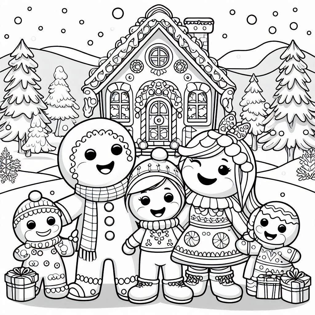 The Gingerbread Family, 52 designs, coloring ebook, digital printable product, instantly download