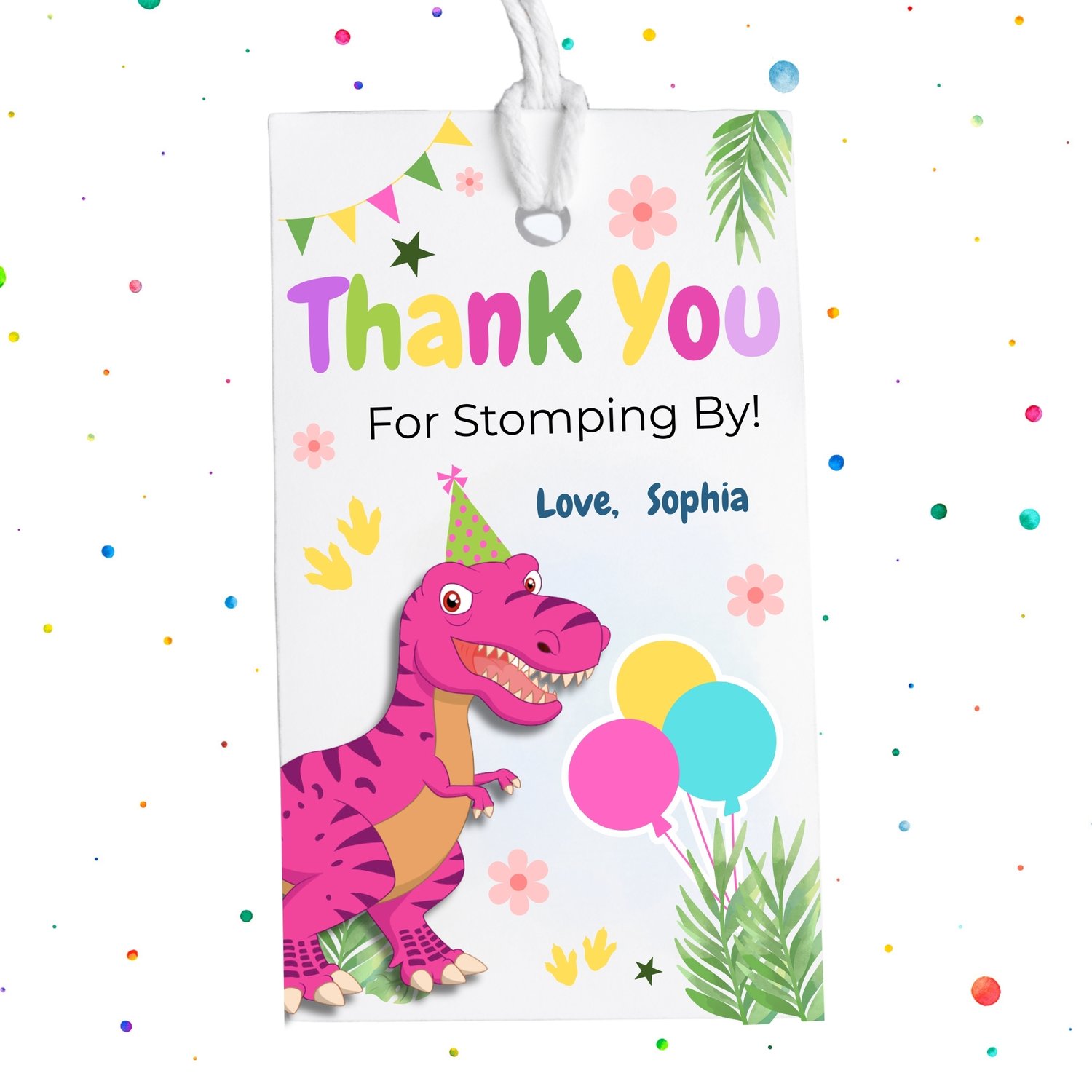 Birthday Dinosaur Favor Tags | Printable Dino Party Thank You Tags | Editable T-Rex Birthday Favor Labels for Kids