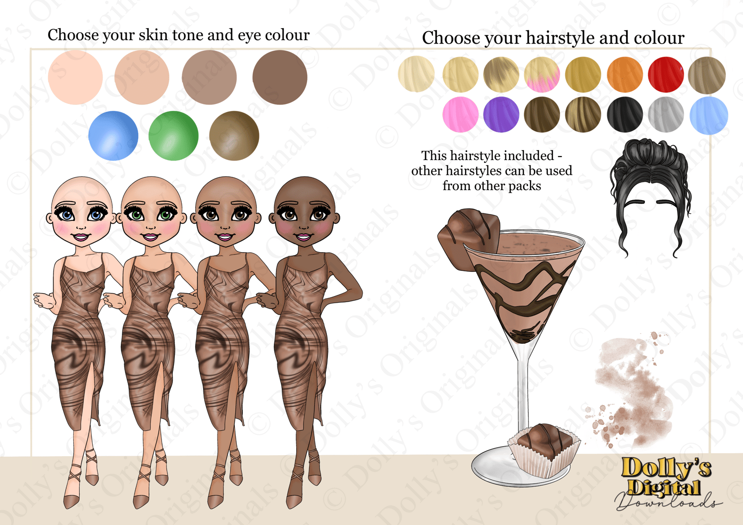 Instant digital download of our Brown Fancy Cakes Cocktail Dolly Character Bundle PNG (30 PNG’s)