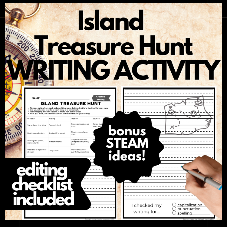 Take your students on an unforgettable narrative writing adventure with the Island Treasure Hunt Writing Activity. Designed for 2nd, 3rd, 4th, or 5th graders, this activity sparks creativity as students craft stories about tropical islands, rival treasure hunters, mysterious guides, and daring solutions to tricky problems. With built-in brainstorming, engaging prompts, and a self-editing checklist, this resource makes narrative writing both fun and structured.