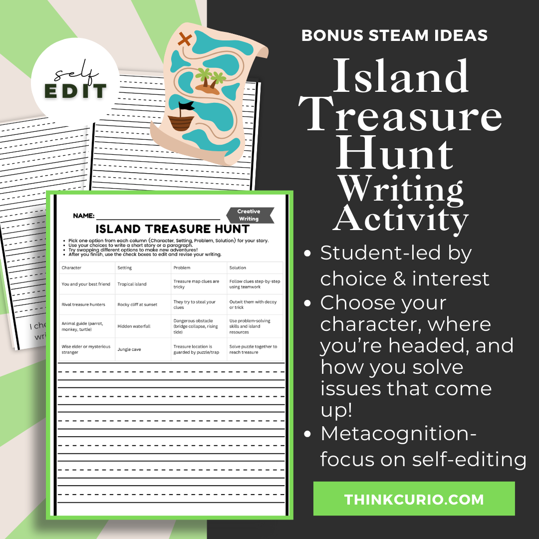 Island Treasure Hunt Creative Writing Activity Challenge 2nd 3rd 4th 5th Grade