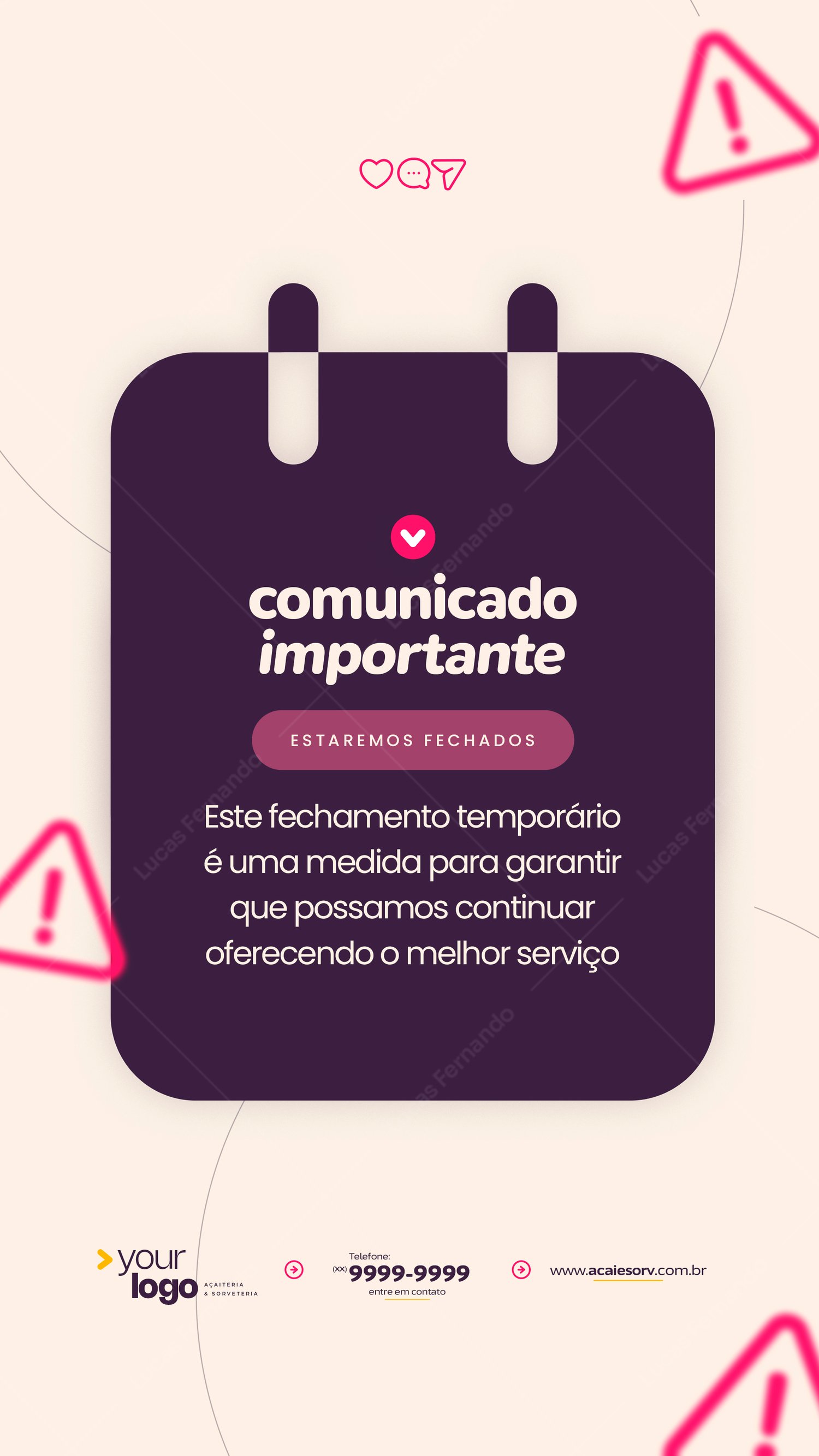 Comunicado importante estaremos fechados temporariamente para melhor atende-lôs | Avisos e Comunicados