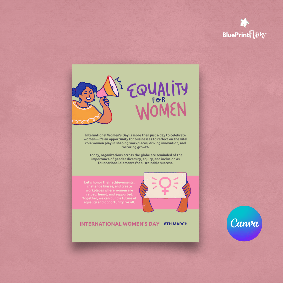 With editable text in Canva, you can easily customize it to suit your needs—whether for office distribution, awareness campaigns, or social media sharing. The cartoon aesthetic adds a dynamic and engaging touch, making it stand out while reinforcing the message: Unite for Women’s Rights!