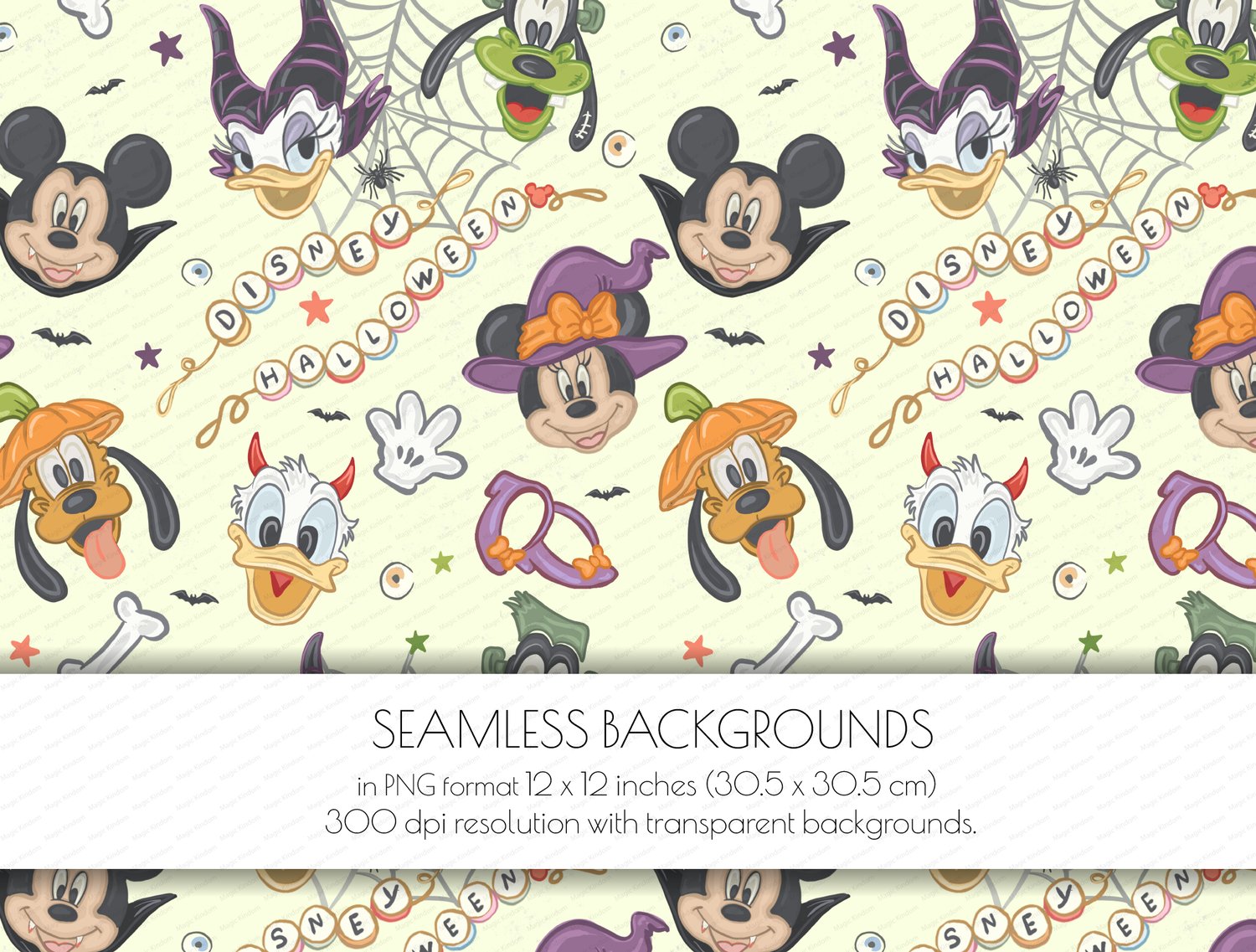 1 Disney Halloween Mickey and Friends Seamlessbackground in PNG format 12 x 12 inches (30.5 x 30.5 cm) 300 dpi resolution .