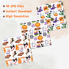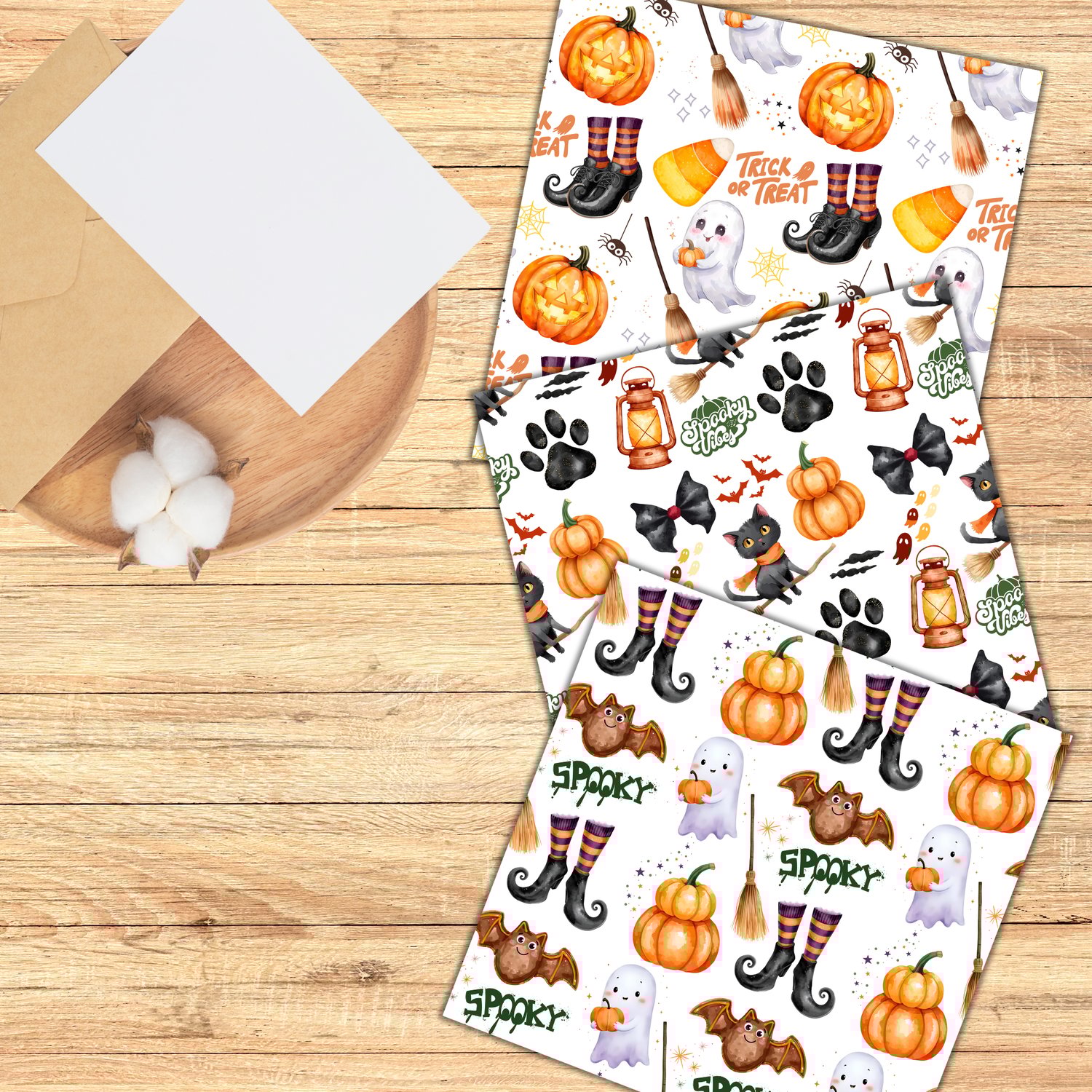 Creating Halloween-themed invitations, party printables, greeting cards, gift wrap, treat bags, planner stickers, scrapbooking pages, social media graphics, product packaging, and seasonal fabric designs. The seamless format makes it easy to apply these patterns to both digital and printed projects.
