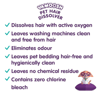 Vamoosh Pet Hair Dissolver is the world's first pet hair remover for washing machines. Using active oxygen, Vamoosh breaks down hair in the washing machine, leaving pet bedding, towels and blankets hair-free and clean. Vamoosh Pet Hair Dissolver also stops the build up of hair in washing machines, meaning that future washes are protected from hair and the drum and filter are left clean after use. NB: We recommend that you use 2 sachets the first time you use Vamoosh on a particular item due to the ingrained hair.