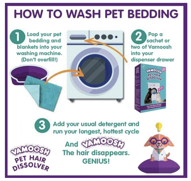 - 1 box of Vamoosh Pet Hair Dissolver - 3 x 100g