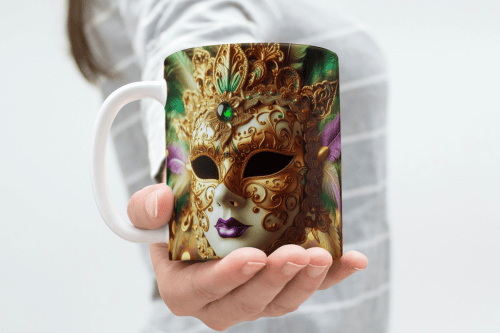 🎭 Designing festive mugs for Mardi Gras and Carnival celebrations.