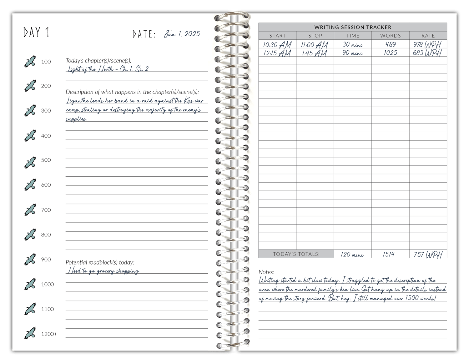 For this challenge, you need only your favorite means of getting the words from your head onto the page and some way to keep track your writing days and word count. If you’d like something a little more in depth, this workbook has all kinds of goodies to keep you on track and provide a reference once you’ve completed the challenge: