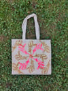 Eco-Friendly Choice: Replace disposable plastic bags with this reusable, sustainable alternative. Natural cotton is biodegradable, and hand printing uses minimal energy compared to industrial production.