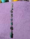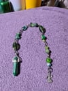 Handmade green glass beaded pendulum with green and black stone pendant and cactus charm