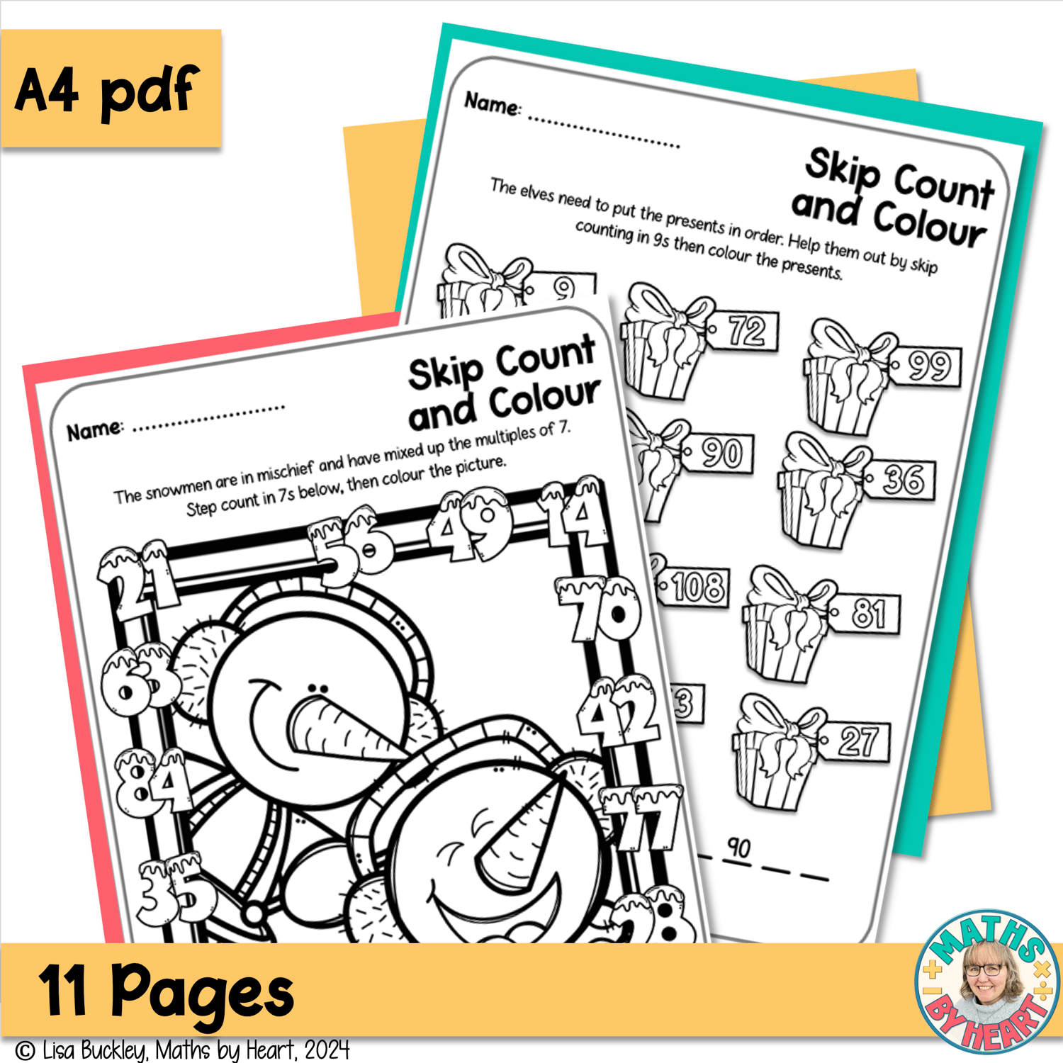 Skip Counting Christmas Multiplication Maths Worksheets & Colouring