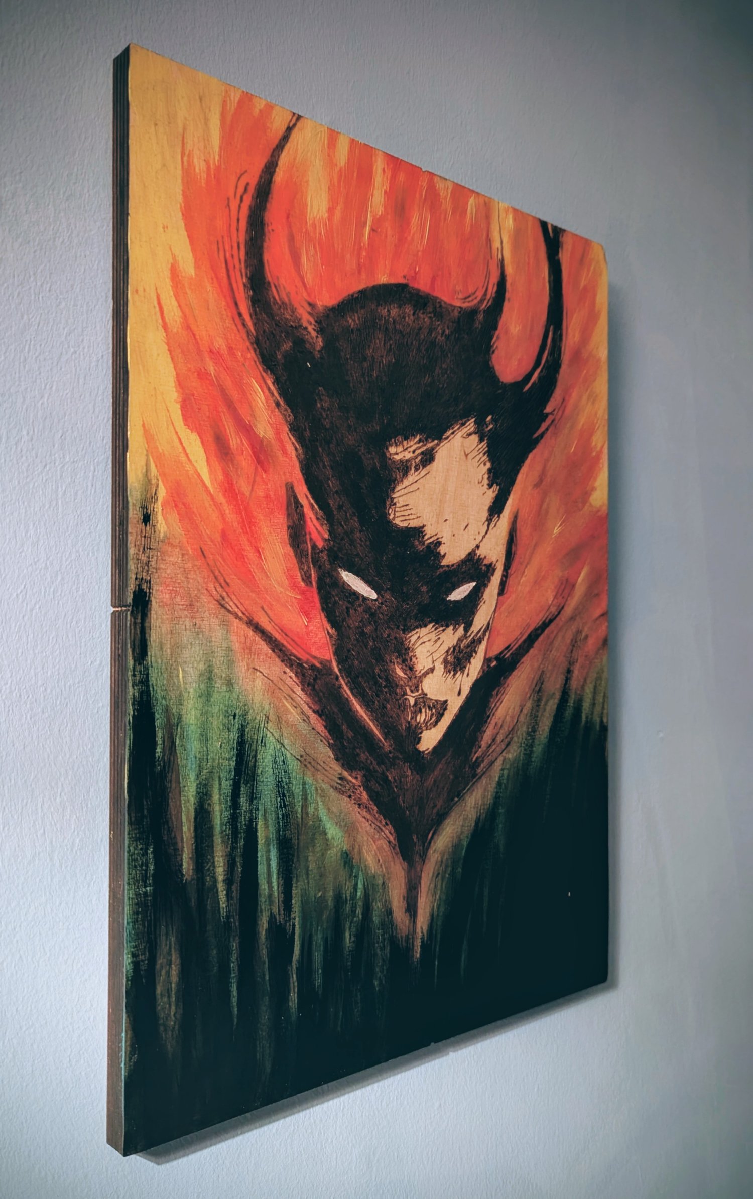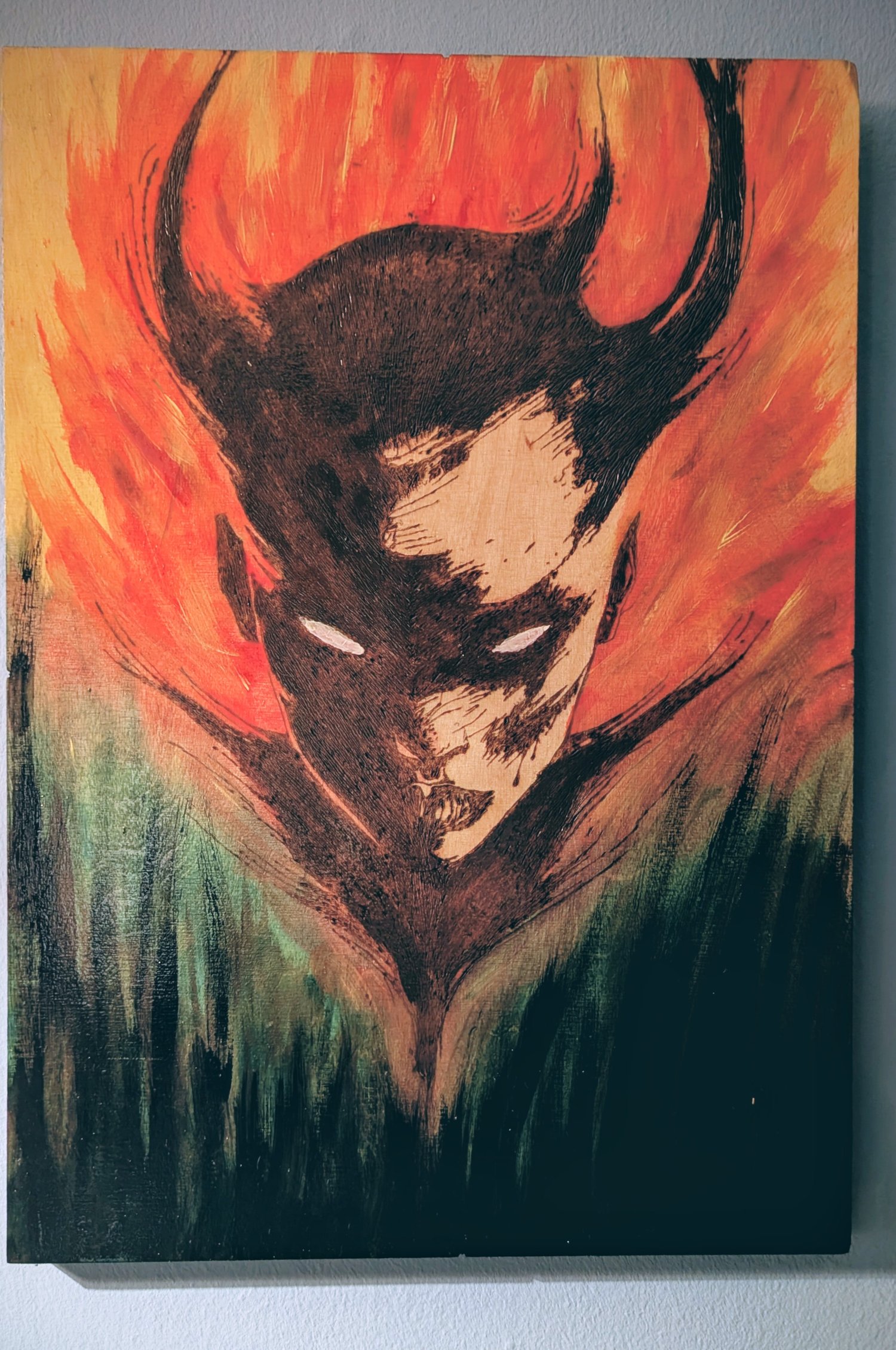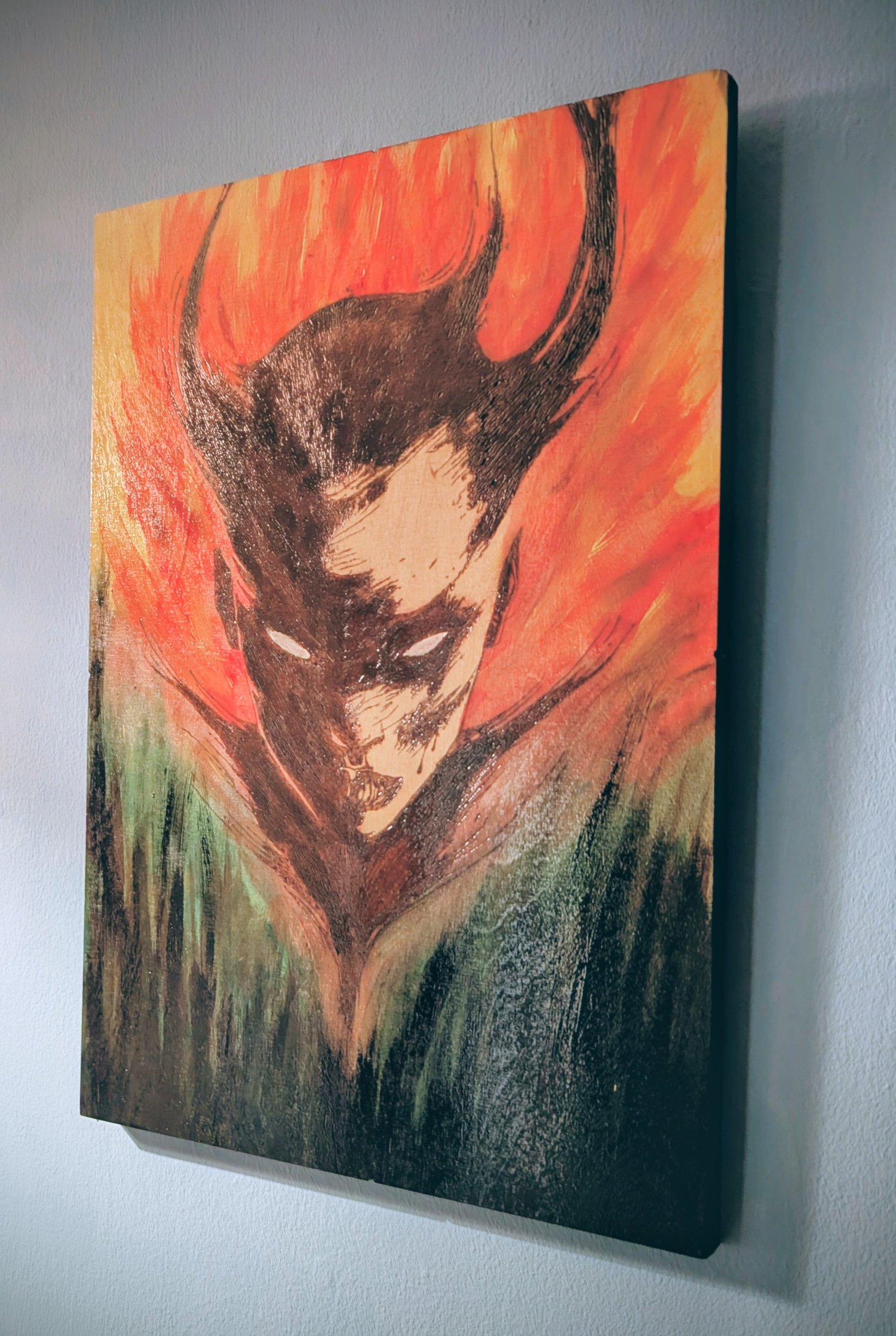 Handmade Lilith woodburning and acrylic painting size A3