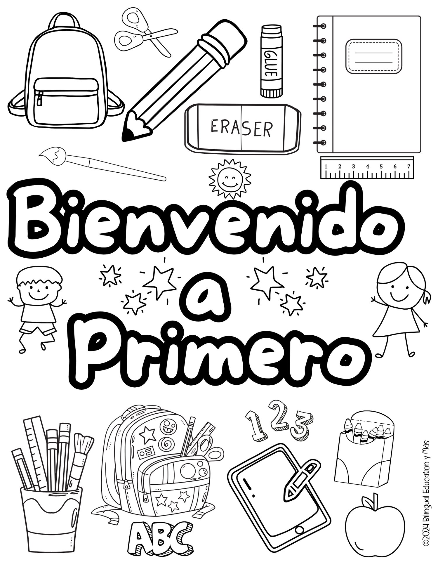 Regreso a Clase - Back to School Coloring Pages - English and Spanish Pages