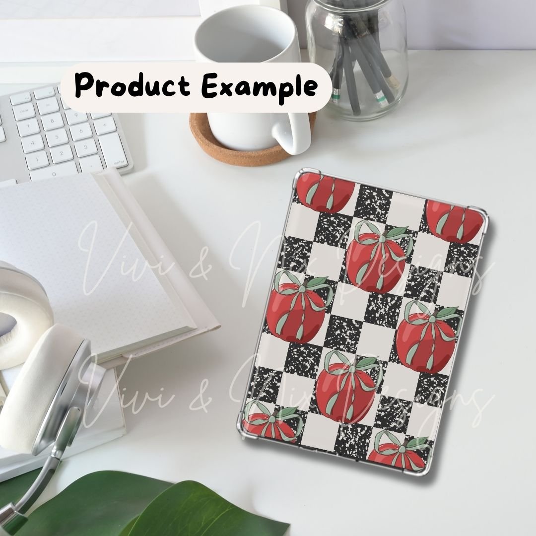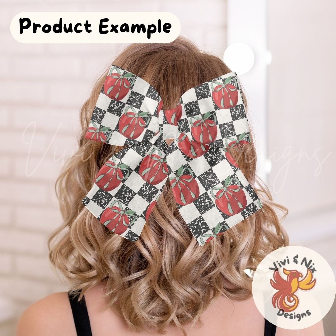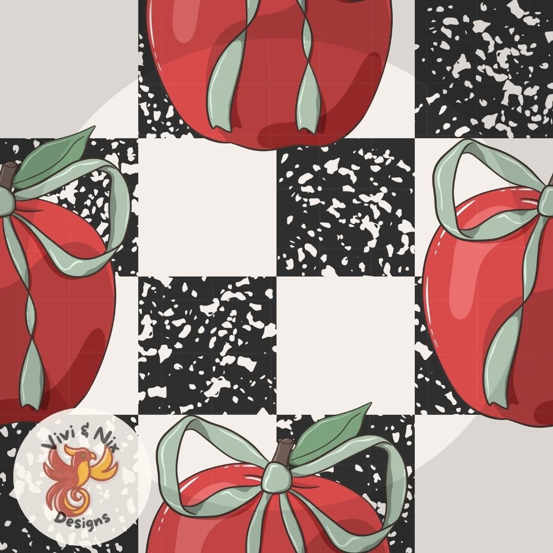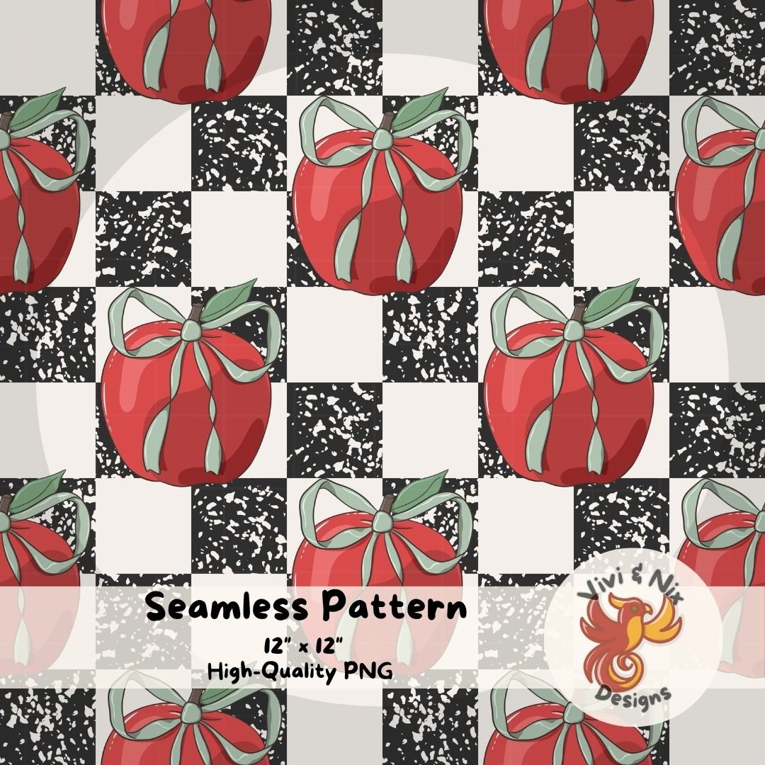 Apple Bow Seamless Pattern PNG – Composition Notebook Checkered Teacher Pattern | FREE Limited Time