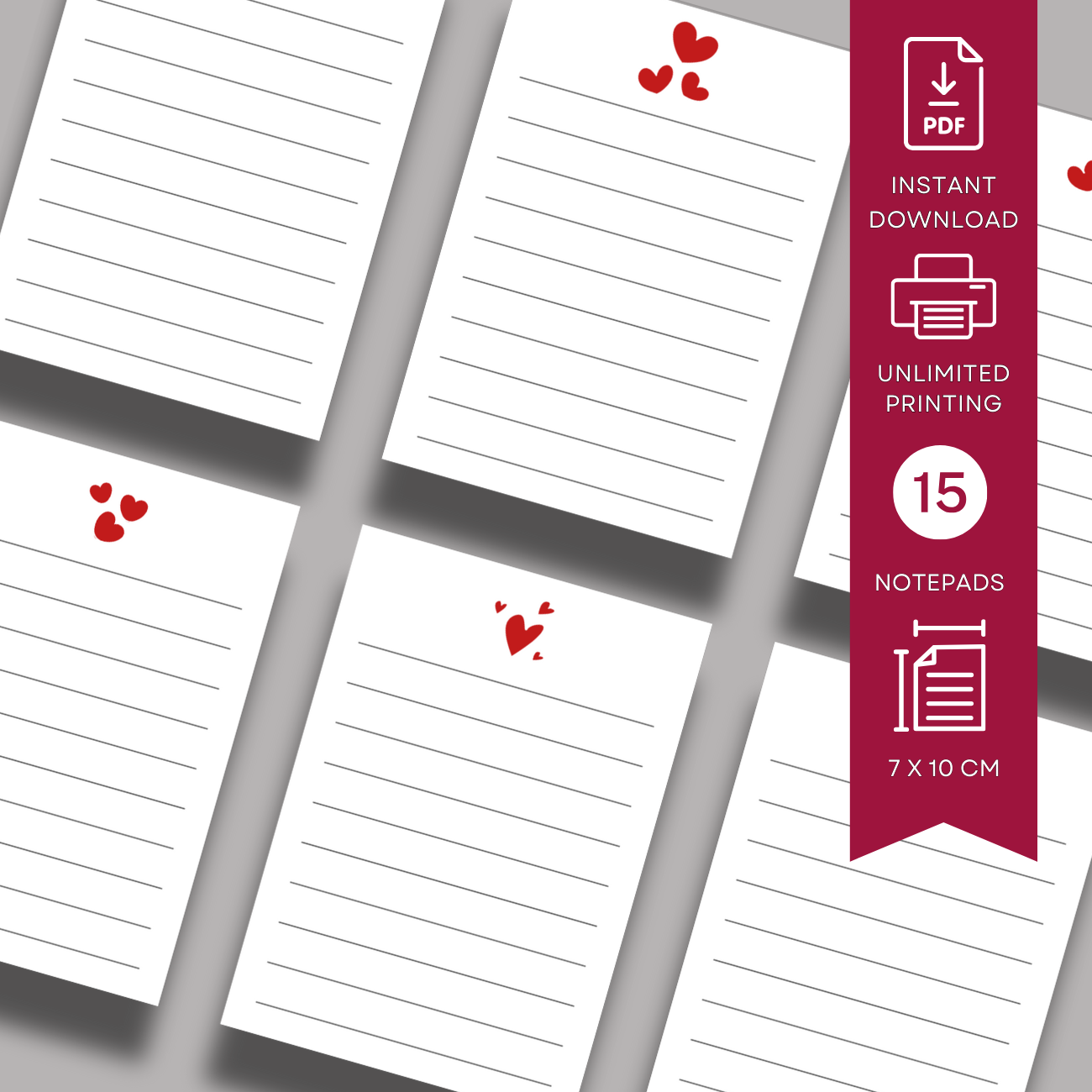 Express your love in the sweetest way with our Valentine’s Day Notepad Collection. Perfect for Valentine’s Day or anytime you want to share love, these elegant printable notepads feature charming red heart designs that add a romantic touch to your notes, lists, or reminders. 💖
