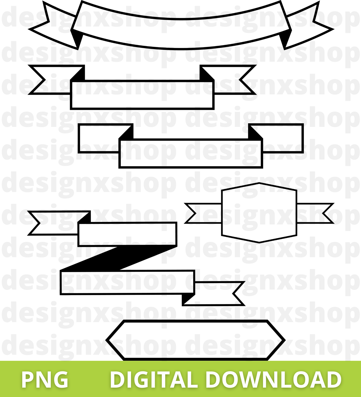 Ribbon banner Svg, Banner svg, Frame svg, Ribbon banner clipart, Ribbon svg bundle, Frame Outline, Label svg, Instant Download PNG and SVG