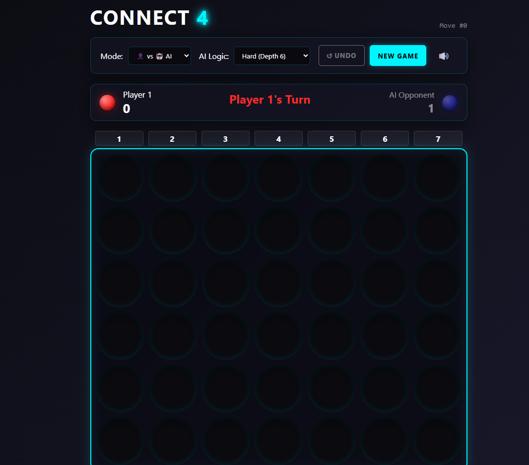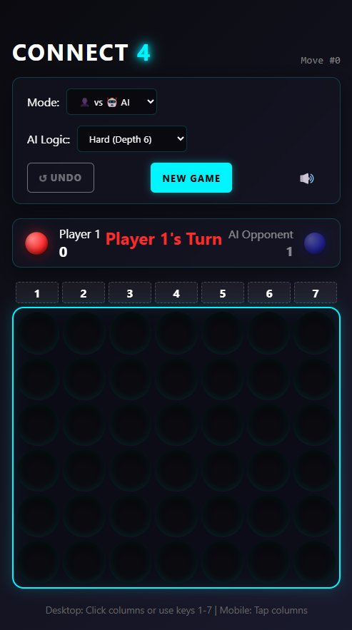 - 🎵 Integrated Web Audio Synth: Dynamic sound effects (drop thuds, win jingles, and retro AI computing beeps) are generated natively in the browser via the Web Audio API. No external .mp3 or .wav files to host or load!