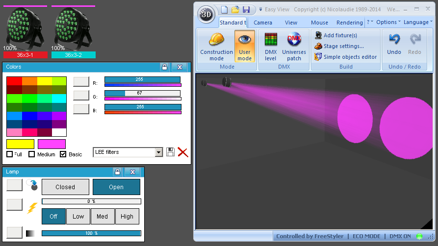 Esta Librería SSL2 está optimizada para trabajar con Magic 3d Easy View. Es decir para ver una representación 3D de las secuencias que estemos realizando con Freestyler, QLC+ o cualquier otro soft que se conecte con Magic 3d.