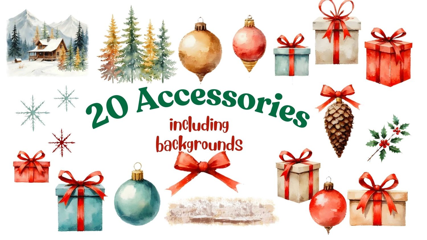 Woodland Animals Christmas family Clipart Set – 36 PNGs, 16 animals, 20 elements incl backgrounds