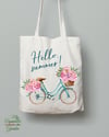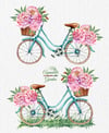 Vintage bicycle and rose bouquets, green grass and basket. Summer mood, vacation theme