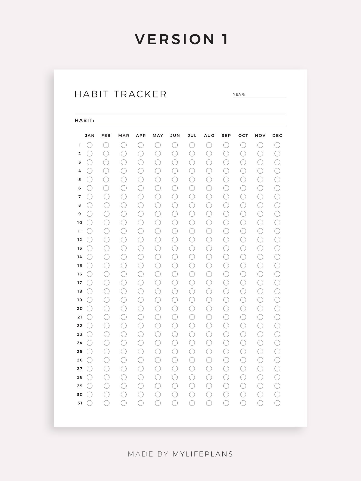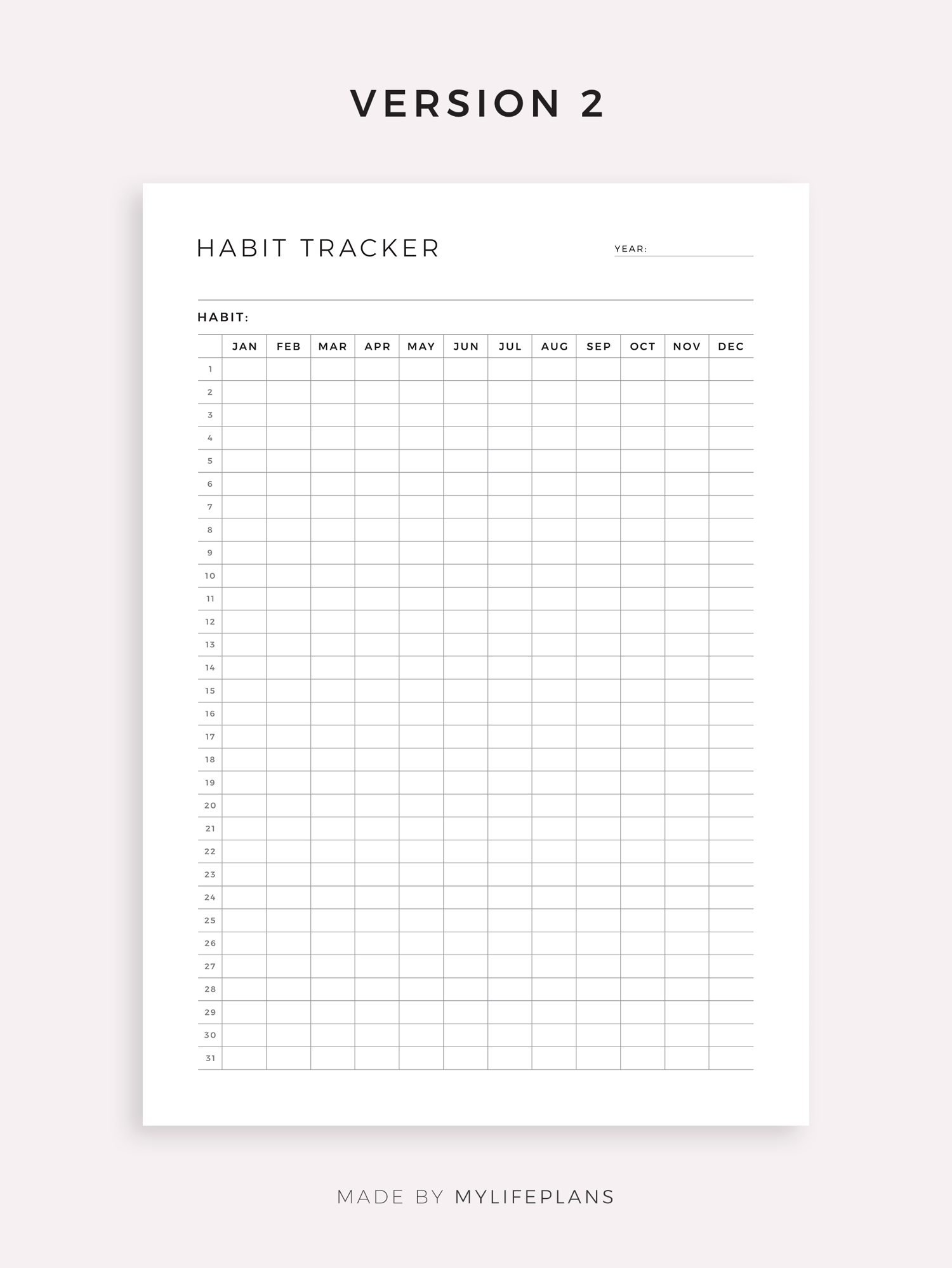 This is a printable yearly habit tracker — just download, print, and start using it right away.