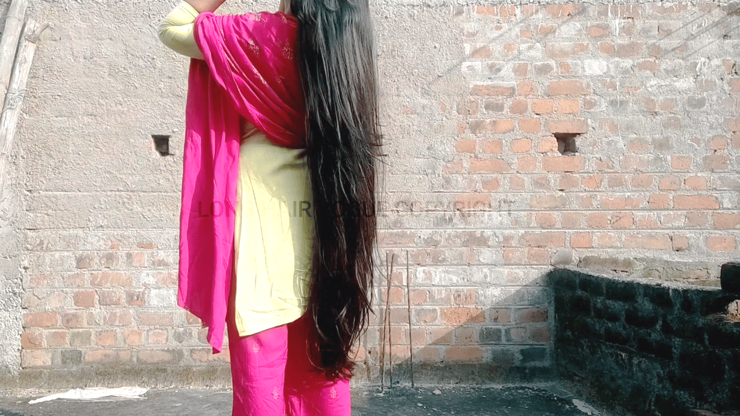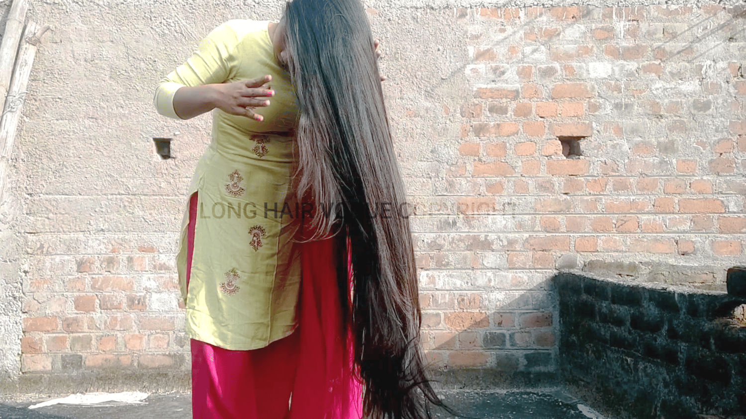Lose yourself in the graceful allure of a stunning Indian woman as she tenderly brushes, plays, and releases her extraordinary long, thick hair. From gentle front-facing hair play to a captivating bun drop, every moment is a tribute to feminine grace — adorned in a vibrant blend of yellow and red traditional attire.