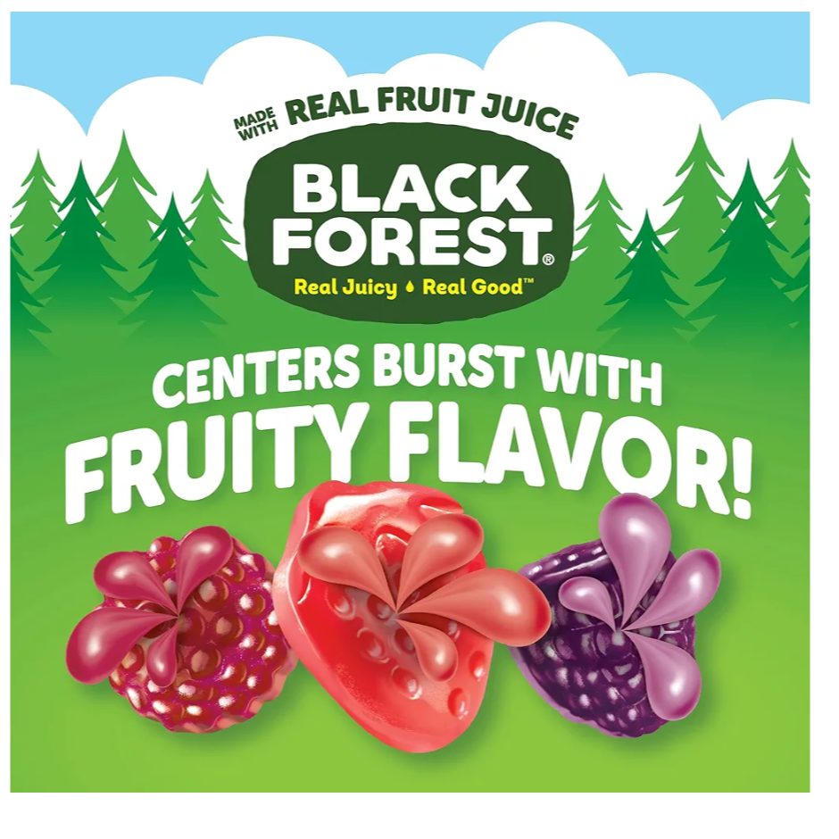 BURSTING CENTERS: Bite into a snack that bursts with flavor and juicy delight! Black Forest fruit flavored snacks are made with real fruit juice* and have a soft, chewy texture