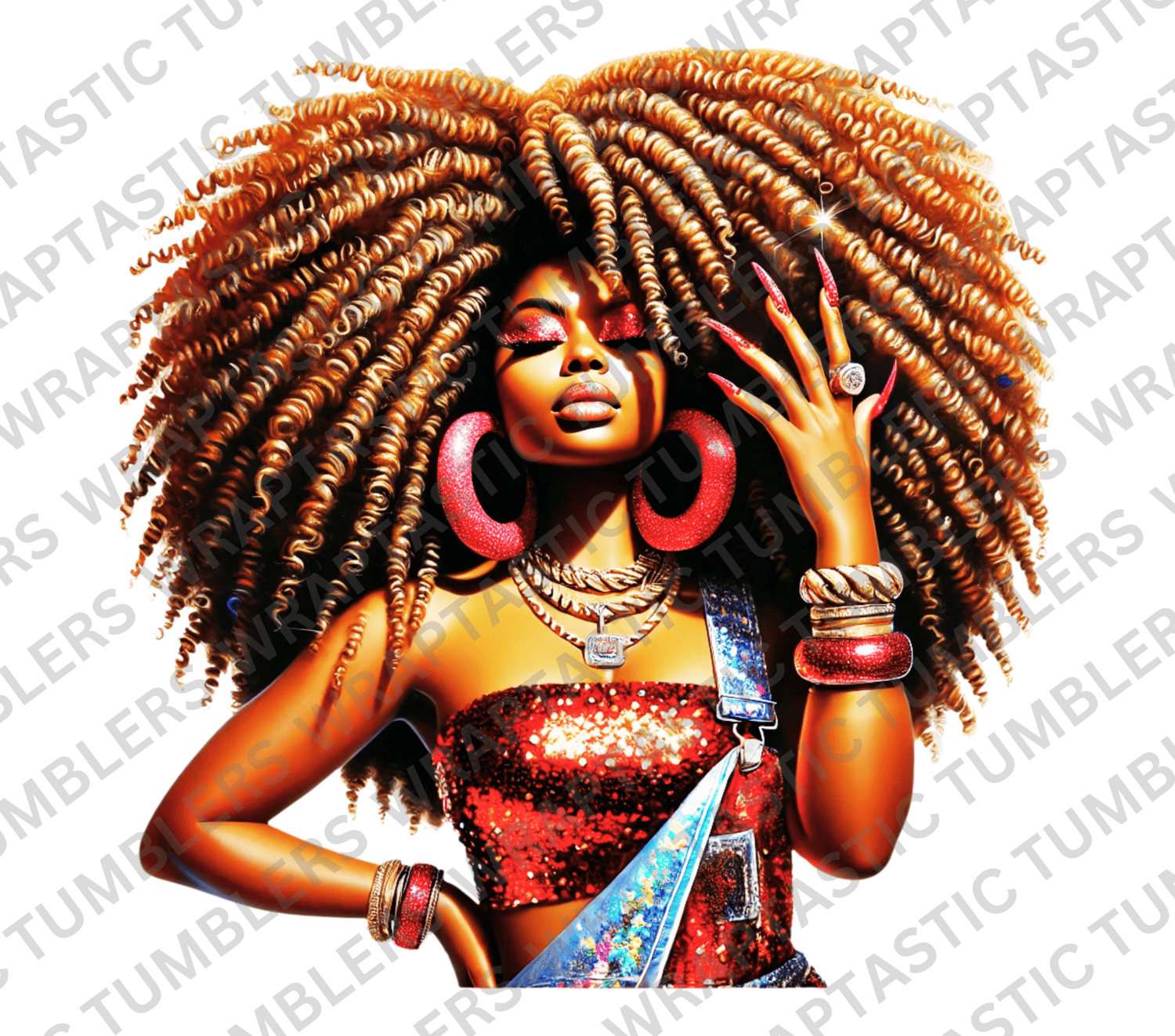 Red Glitter PNG Tumbler Wrap | Afrocentric Digital Download for Sublimation Crafts, Shirt Design, Mug PNG, Glitter Afro Art