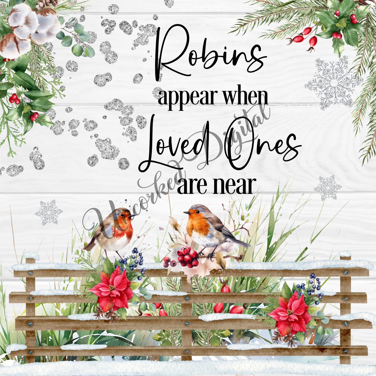 Robins appear & Those we love, Boots and robin re-sizable winter square design suitable for various end products.