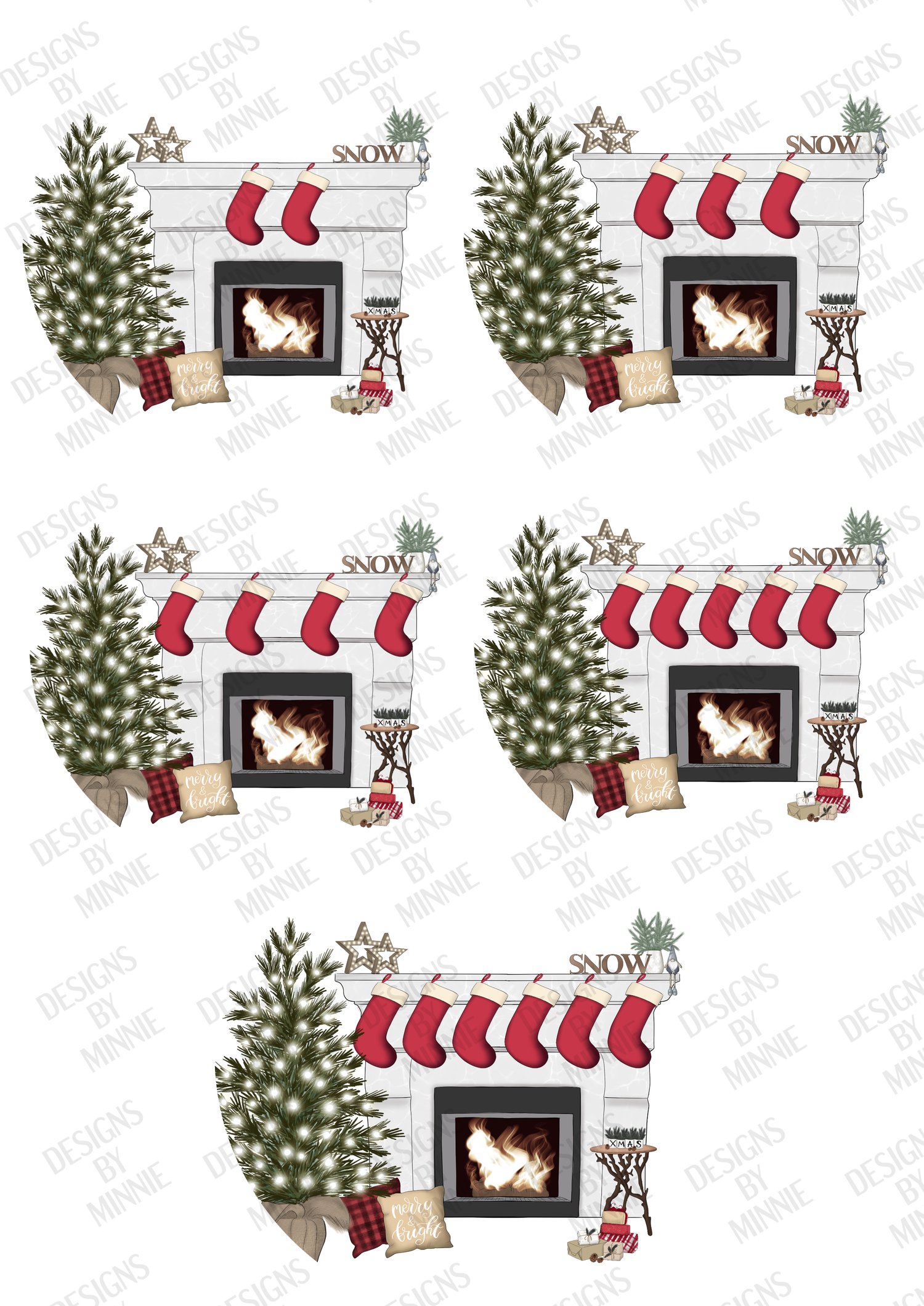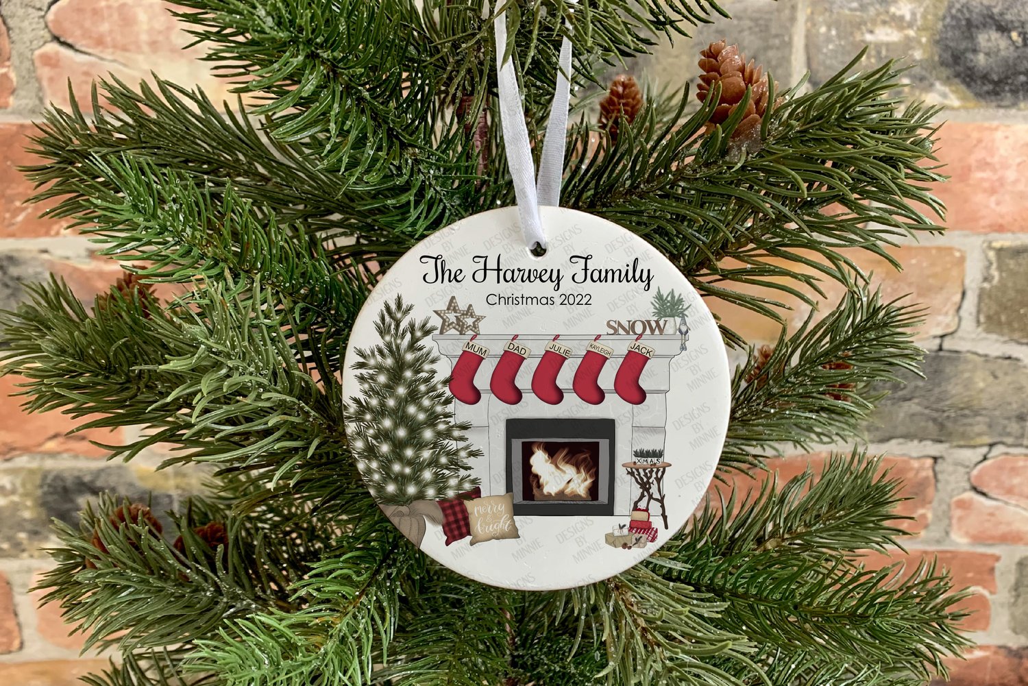 Christmas Family Fireplace (2-7 stockings) ROUND