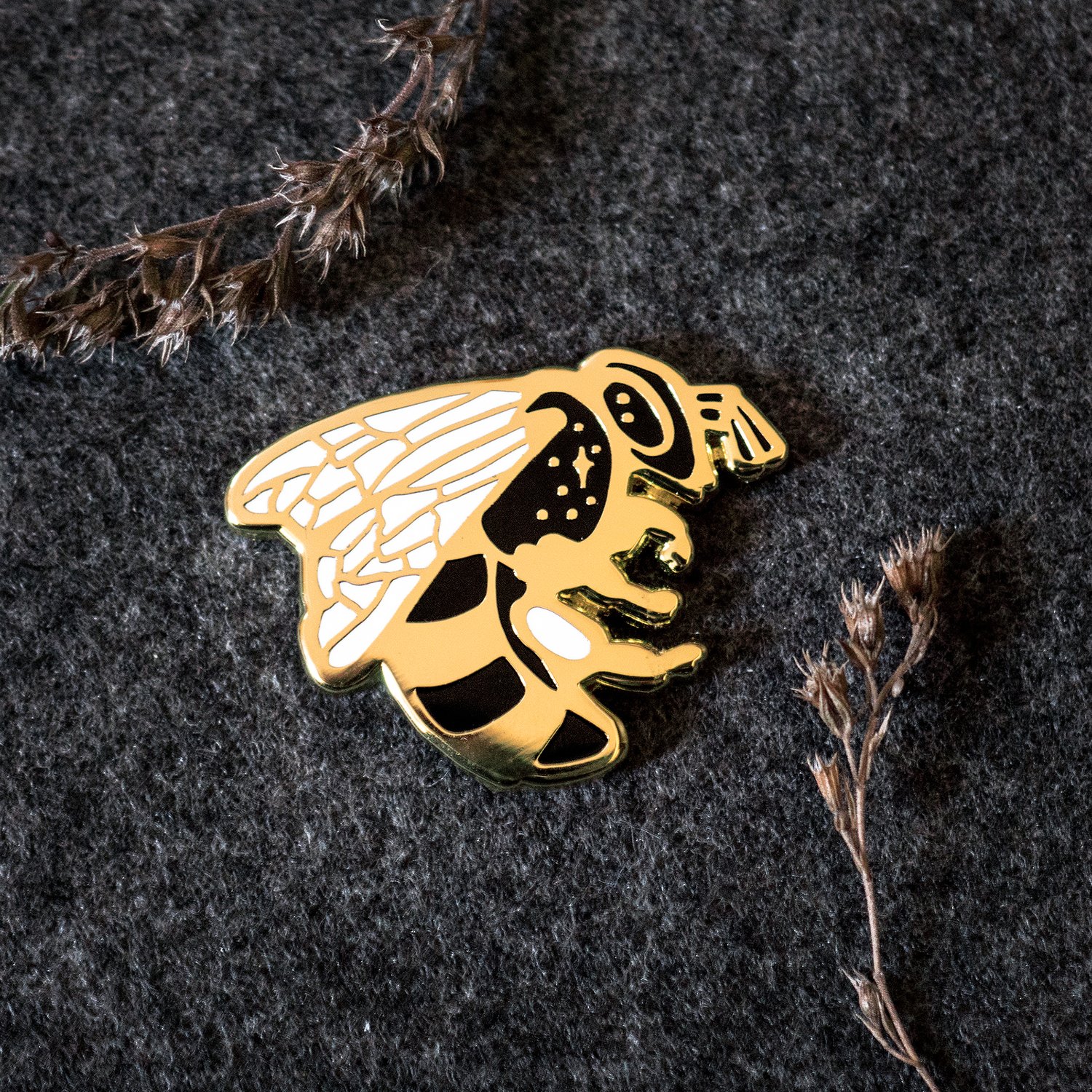 The Western honey bee (Apis mellifera) pin is part of the space themed Interstellar Invertebrates hard enamel pin set.